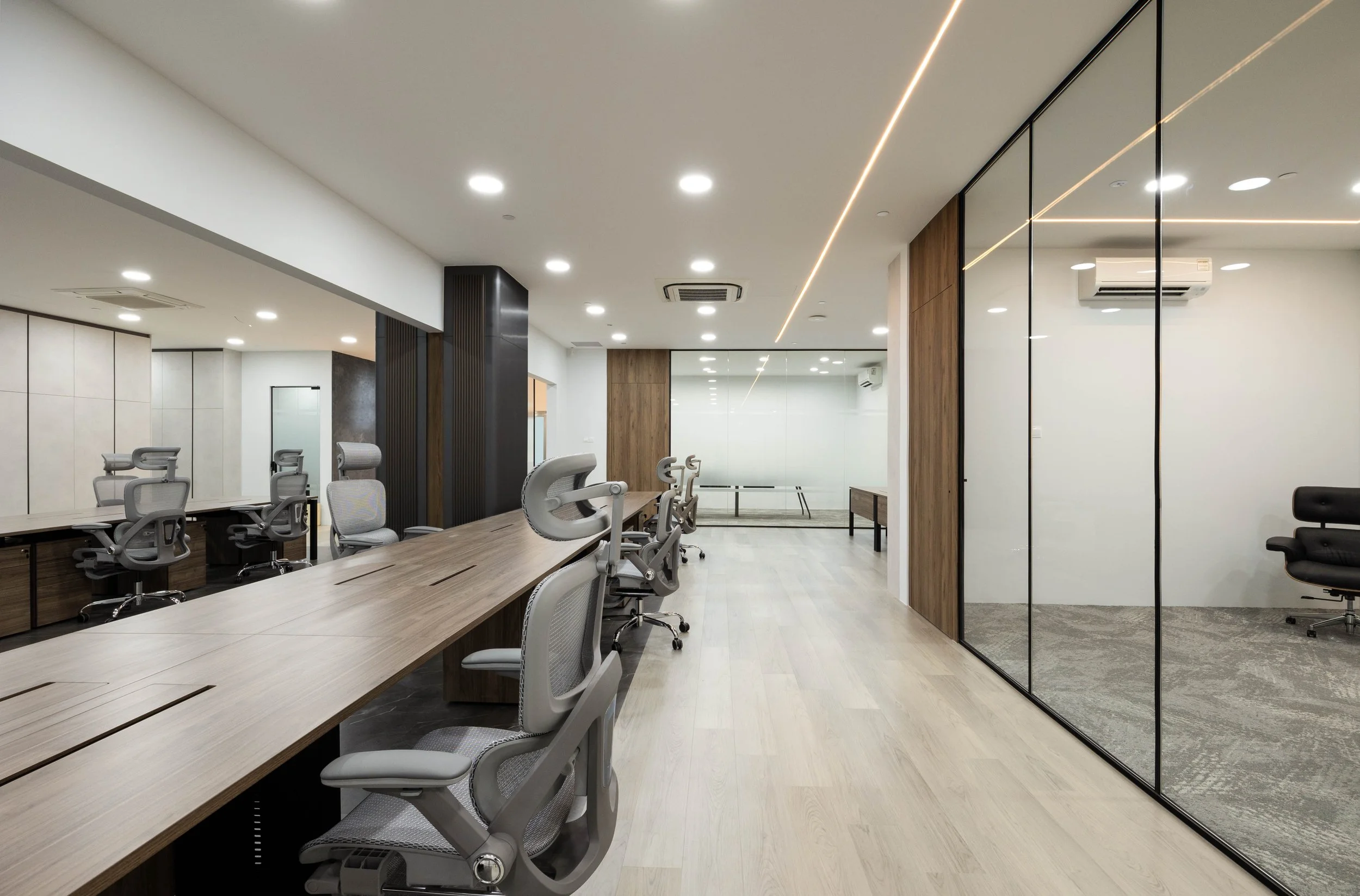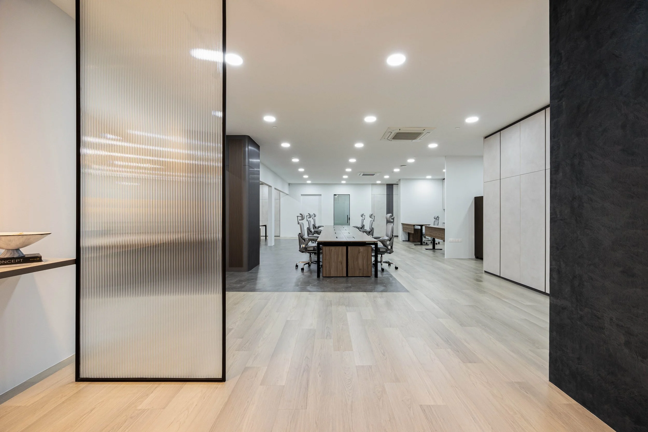 Flow & Synergy at Tai Seng underwent a complete transformation from an enclosed, outdated space into a modern, open, and functional workplace guided by Feng Shui principles. The new design balances harmony, function, and aesthetics featuring earthy tones, thoughtful material contrasts, and a layout that enhances collaboration, circulation, and energy flow.